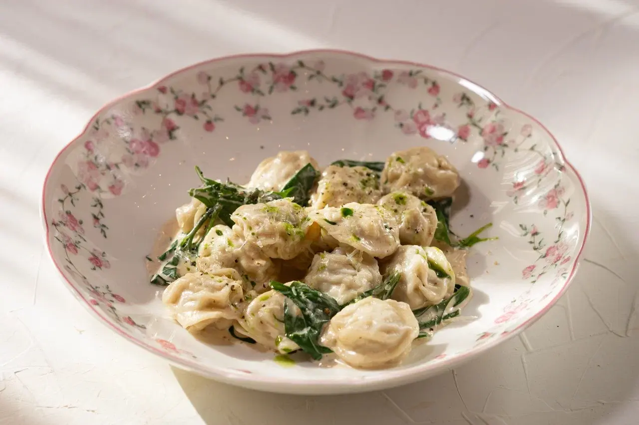 Домашние пельмени в сливочно-перечном соусе с пармезаном