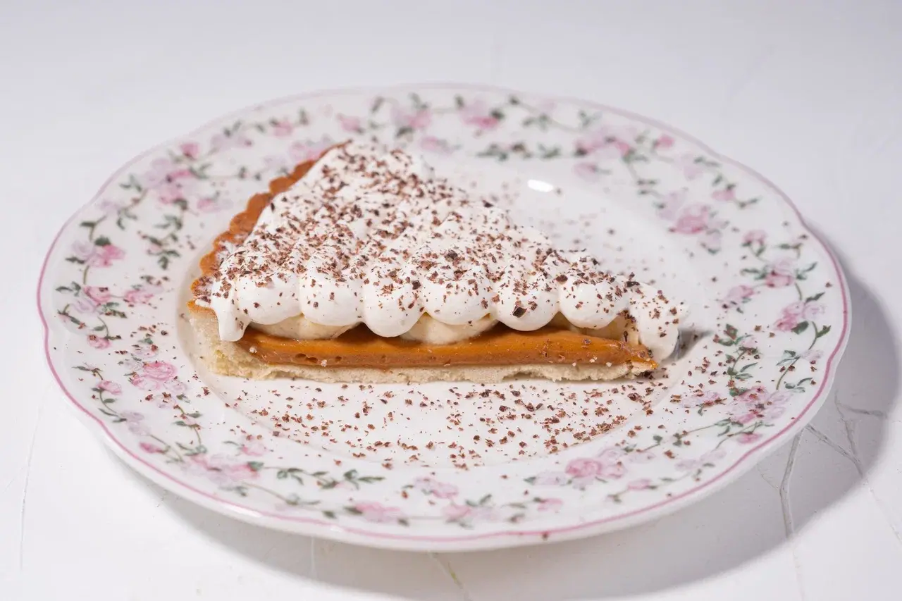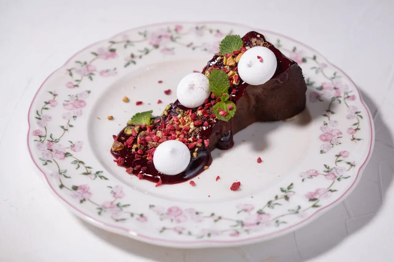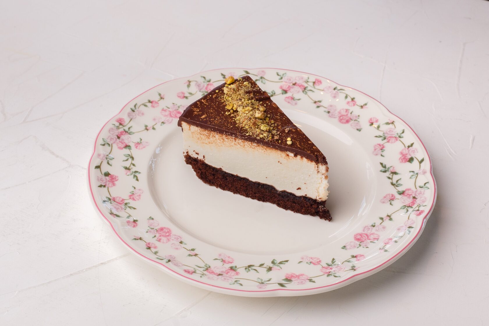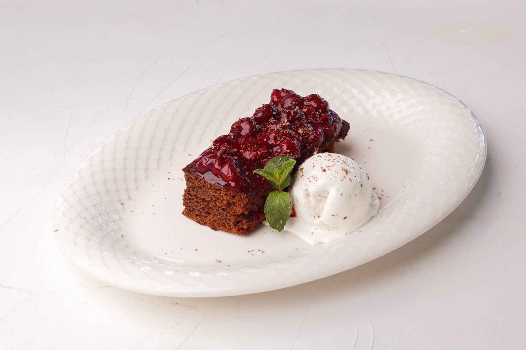 Баскский чизкейк с ежевичным соусом и фисташкой