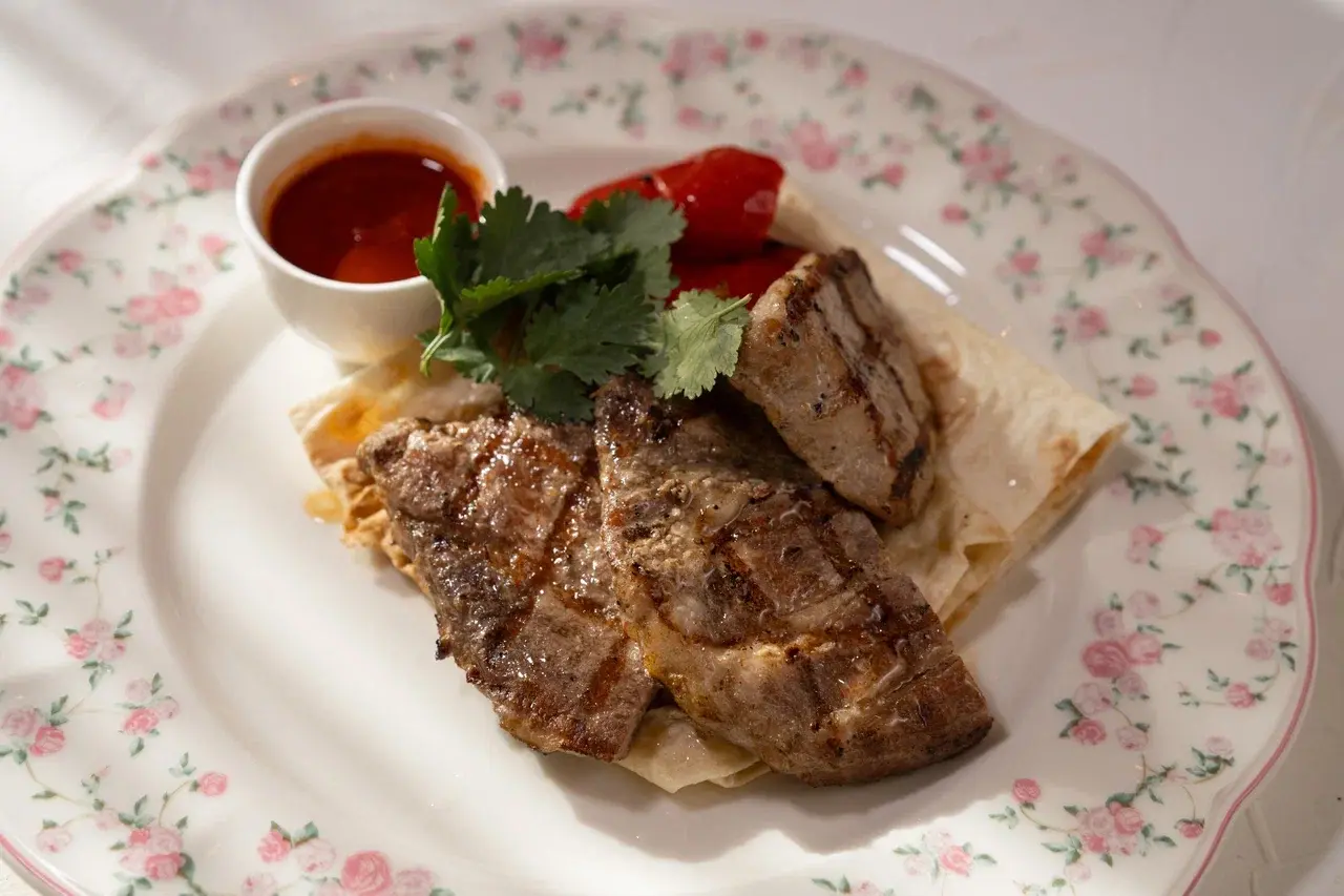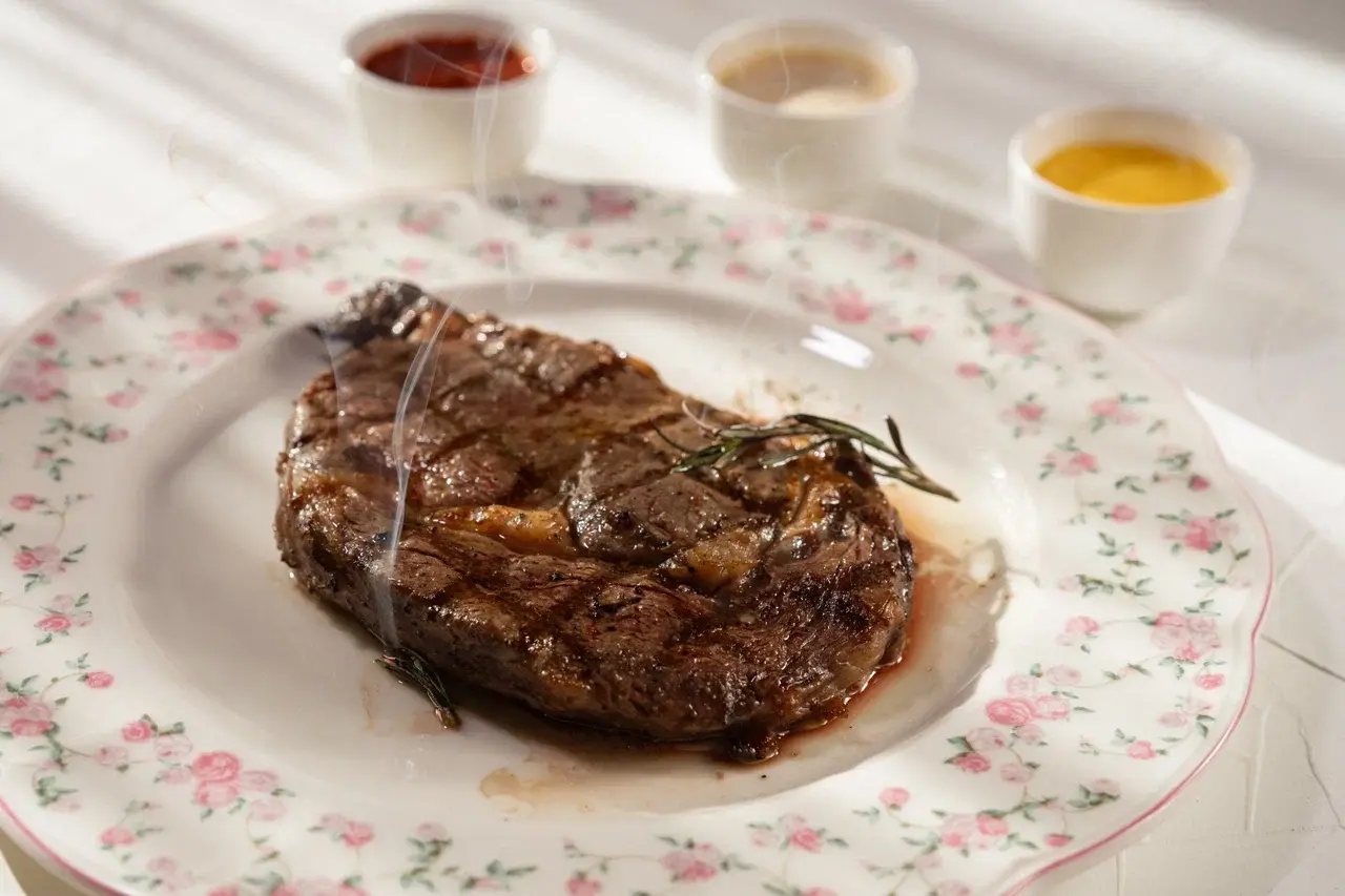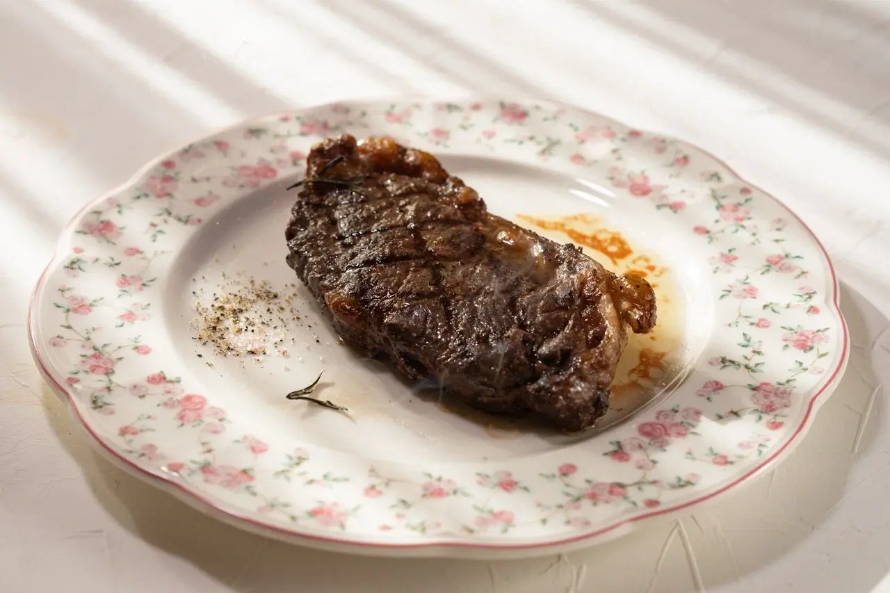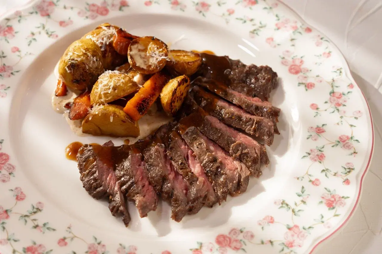 Стейк мясника с бэби картофелем под сливочно-перечным соусом