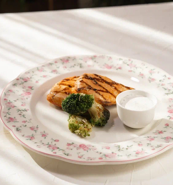 Куриная грудка на гриле с брокколи и йогуртовым соусом