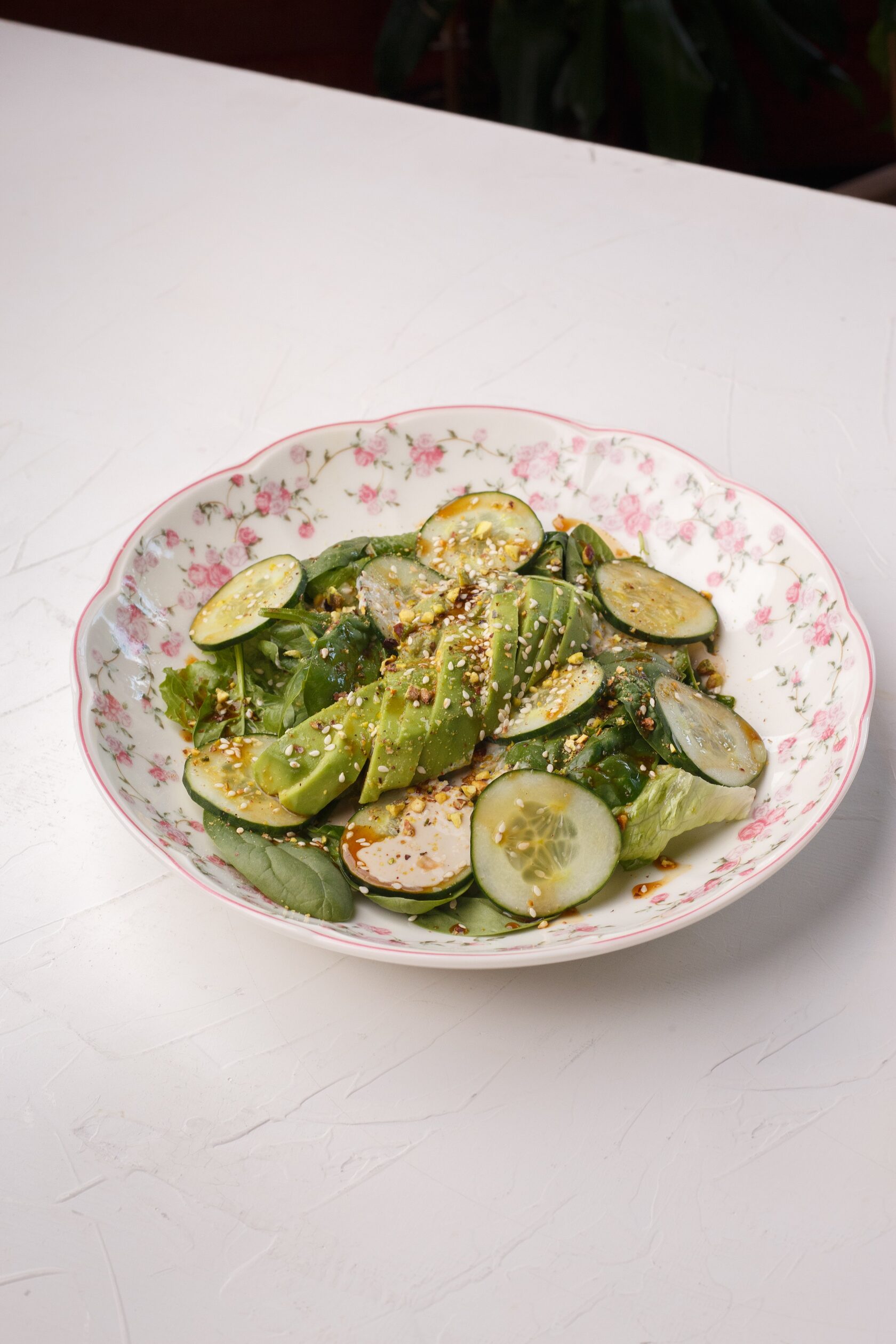 Салат с ростбифом, орехом пекан и кунжутно-ореховым соусом